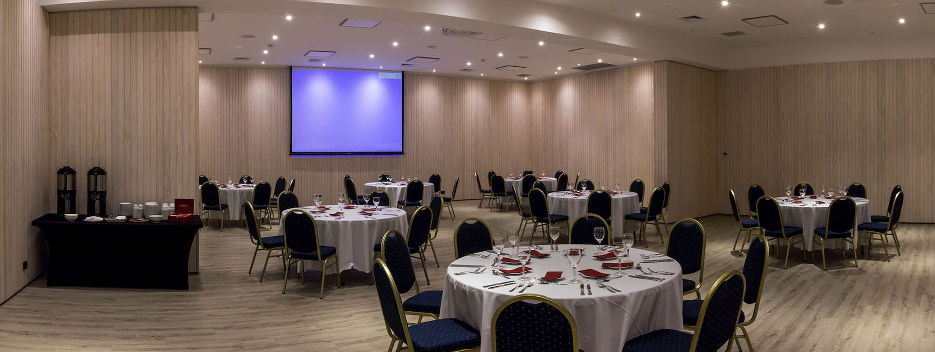 Dispomos de salas de eventos com capacidade para até 300 pessoas, ideais para reuniões, seminários e eventos sociais. Nossas salas estão equipadas com sistemas audiovisuais, aluguel de equipamentos, tradução simultânea e WI-FI. Fazemos questão de organizá-los de acordo com a sua necessidade e fornecemos os equipamentos necessários para suas apresentações, garantindo o sucesso do seu evento.